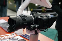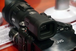 カメラブロックはGZ-G5をベースとしたもので、レンズは35mm換算で29.7mm〜297mmの光学10倍ズーム機能を装備。センサーは1/2.3インチ1,280万画素の裏面照射型CMOSを組み合わせ、JVCならではのタイムラプス撮影機能も備える。音声ではMOV時のみリニアPCM記録に対応できる点も見逃せない。また、標準で折りたたみ式のフードも標準で付属し、明るい屋外での撮影に考慮。さらにオプションでEVFも装着でき、別のシューには外部マイクを併用することも可能だ。