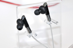 日本での発売時期は「今年春の予定」(説明員談)とのこと。今回出展されているモデルは、音・外観ともに最終モデルではないそうですが、注目の新製品を発売に先駆けて試聴するチャンス。じっと聴きいっている方の姿が多く見られました。そして、CESで発表されていたイヤホンも、モックが参考出展されています。