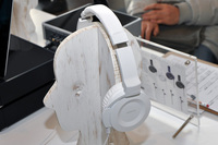 オンキヨーブースは、先日CESにも出展された新ヘッドホン2モデル(グローバルでの型番は「ES-HF300」と「ES-FC300」)の試聴機を多数用意し、じっくりと音を確かめられるようになっています。