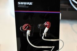 SHUREブースに出展されているのは、SRH1840、SRH1440、SE215 Special Edition、SE535 Special Edition。SE215 Special EditionやSE535 Special Editionは、お手持ちのスマートフォンやDAPにつないで試聴が可能。SRH1840とSRH1440は、AuraのCDプレーヤー「vivid」とフォステクスのヘッドホンアンプ「HP-A7」の組合せでアピールされています。