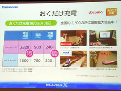 なお、「おくだけ充電」と「急速充電」の両方を搭載しているのはドコモ2013年春モデルでELUGA Xだけであることも紹介。バッテリー容量を「ELUGA V」比で45%アップさせながらも、おくだけ充電での充電時間を25%短縮させることにも成功している。