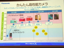 そのほか、カメラ性能についてもLUMIXのノウハウをスマートフォンに伝承し徹底的にチューニングしたと説明。リアルタイム暗部補正などの機能を搭載したことやシーン検出性能を向上させたことなどで、携帯電話ではなくデジタルカメラの領域にまでカメラ性能を高めたとした。