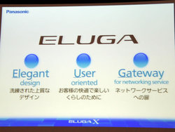 同社モバイルターミナルビジネスユニット 営業企画グループ グループマネージャーの松田賢治氏は、「ELUGA」という製品名について「Elegant design」の「EL」、「User oriented」の「U」、「Gateway for networking service」の「GA」を組み合わせたものだと紹介。「X」は「Extreme」「Extra」「Extend」を意味しており、ナンバーワンのスマートフォンを作り上げていくという想いを表現したのだという。