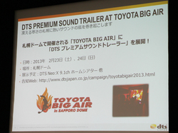 さらに、昨年のSUMMER SONICでは巨大トレイラーを用いて、一般の人々がDTSのサウンドをできるデモを展開。今年2月に開催される「TOYOTA BIG AIR」でも同様のデモを展開し、DTSブランドを多くの人々に浸透させる狙いだ。
