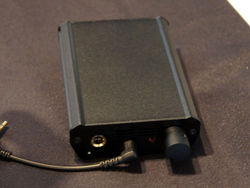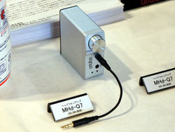 アコースティックフィールドは、“MH audio”のポータブルヘッドホンアンプ「HA-1e」を参考出展。型番から分かる通り「HA-1」をベースにしたモデルで、「e」は「evolution」を意味するという。電源を強化して駆動力を向上させたほか、接続されたイヤホンの特性に合わせて低音を補正する回路を搭載。「価格は未定だが次のヘッドホン祭くらいを目標に発売したいと思っている」(同社スタッフ)との言葉を聞くこともできた。