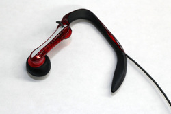 イヤホン部はダイナミック型でφ13.5mmドライバーを搭載。再生周波数帯域は20〜20,000Hz。IPX4相当の防水機能を備えている。フックは耳のかたちにあわせてフレキシブルに調整できる可動式アーム。イヤホンのハウジング部も軸を中心に左右に回転させて調整できるため、装着感を高められるという。