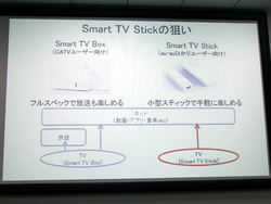 同氏は「インターネット対応テレビが登場しているものの、テレビをネットにきちんと接続できているユーザーはまだ少ないようだ。そこで、テレビを簡単にネット接続できる製品として、Smart TV Stickを開発した」と語った。