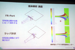 さらに新井氏は「FR-Portは音源を点音源化することができるのもポイント」と語る。というのは、直管式バスレフポートだと、音の出口(開口部)がユーザー側に向いておらず、音を筐体内に捨てていることになってしまうが、一方FR-Portはスピーカーユニットの近くに開口部を設けることができるため、ほぼ同じ場所から音が出るよう設計できるからだという。