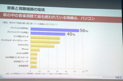 同社コンシューマ商品企画部の石井宏幸主任によると、昨今は音楽を「PCを使って」「無料動画配信サイト(Youtubeなど)」で楽しんでいる方が多いのだという。そんななか、NECは2009年から、ヤマハ製スピーカーを搭載した“VALUESTAR” “Lavie”シリーズを発売。ボディにも「sound by YAMAHA」ロゴを入れ、音へのこだわりをアピールしている。