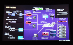 続いて本日の4K中継システムの概略が紹介された。昨年実施された第一回目の実験から、今回は4Kカメラによる撮影体制を強化。キヤノン「C500」、アストロ「AH-4413」に加えて、今回はソニー「PMW-F55」とスローカメラのFOR-A「FT-ONE」を追加導入した。