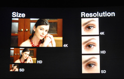 中継システムの説明に先駆けて、今井氏は4K映像のメリットについて言及。「4K放送映像は、画素数ではフルHDの4倍だが、ハイビジョン放送がインターレース方式であるのに対して、4K放送はプログレッシブ方式になる。そのため、実際の情報量は8倍にものぼる」とした。