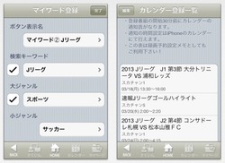 見たい番組が見つかったら、忘れないようiPhoneのカレンダーに登録することができる。興味がある番組は、「ウォッチイン」ボタンを押すとtwitterやFacebookに情報を投稿することが可能だ。