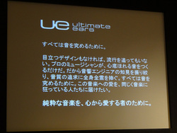 黄氏は「イヤホン・ヘッドホンのカテゴリーには今や巨大なマーケットが形成されており、近年のスマートフォンブームにより、ワイヤレススピーカーがこれに続く勢いで前年比3〜4倍の勢いで膨れあがっている。そのポテンシャルは非常に高い。成長市場でUlitmate Earsブランドを成功させるためには、プロのミュージシャンたちに愛されてきたイヤホン製品が、その開発の基本理念としてきた“高音質”をさらに追求していくことが大事」とした。また「完璧な音」を追求することと同時に、ロジクールのワイヤレスオーディオ技術を融合させ、近年の音楽リスナーのライフスタイルにマッチした、“便利で使いやすいスピーカー”を商品化、アピールしていくことの大切さについても言葉を加えた。