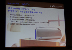 (株)ロジクールは、Ultimate Earsブランド初となるBluetoothワイヤレススピーカー「ブームボックス」シリーズ2機種を発表。3月に発売された「UE9000」など、ヘッドホン・イヤホンを含む新製品の記者発表会を開催した。