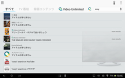 また、テレビ番組やネットコンテンツを横断的に検索する「テキスト検索」機能も搭載。番組や出演者名などのキーワードを入力すると、テレビ番組/YouTube/Video Unlimited/Music Unlimited/TBS世界遺産セレクション/Billabong/日本経済新聞 電子版 映像ニュース/3D Experienceの各コンテンツを横断的に検索する。
