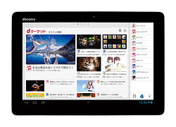 dtabは10.1インチのディスプレイを搭載したAndroid 4.1、クアッドコアCPU採用のWi-Fi専用タブレット。製造メーカーはHUAWEI。「dマーケット」のサービスへ手軽にアクセスし楽しめるよう、ホーム画面をカスタマイズしている。