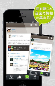 フィード画面にはユーザーの嗜好に応じたアーティストや音楽ジャンルの情報が表示され、好みの楽曲が自動的に集まる仕組み。手持ち以外の楽曲についてもネット上で45秒間試聴できる。