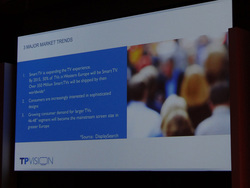 今後の市場予測についてde Vries氏はは「2015年までには、ワールドワイドで3億5,000万台のスマートテレビが出荷され、西ヨーロッパではテレビ商品の50%がスマートテレビになるだろう」としながら、「デザイン面での進化を図りながら、46〜48インチの商品セグメントをメインストリームとして充実させていくことの重要性が高まるだろう」との見解を示す。