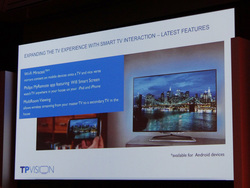 今後のスマートテレビの付加価値戦略について、de Vries氏は「WiFi機能を標準化し、Miracast対応などスマートフォンとの連携を進める。フィリップス独自のアプリも充実させ、テレビで受信したコンテンツをホームネットワーク経由でiOSデバイスとシェアできる機能や、ペイTVのコンテンツもシェアできる環境を整えていく。またクラウドやホームネットワークと連携した、家庭内での複数台のテレビによるマルチルームシェア機能も充実化を図っていく」と語った。