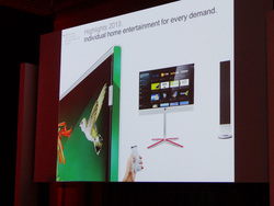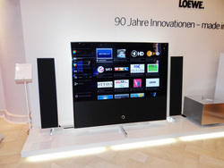 2013年のテレビ主力商品は「Loewe Reference IDシリーズ」。高機能とハイセンスなデザインが、プレミアムブランドのフラグシップとしての存在感を打ち出す。画質・音質の優位性もさることながら、VODストリーミングやヨーロッパでは珍しい、内蔵HDDヘの録画機能も持たせた仕様はまさにフラグシップ。ヨーロッパを代表するテレビメーカーとして、トップレベルの先進性をアピールする。「今後はマルチデバイス/マルチスクリーン対応など、スマートフォンやタブレットなどモバイル機器との連携をさらに充実させていく」(Harsch氏)。