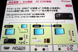 HDMI端子は8入力2出力搭載し、様々な機器との接続性を確保。またHDMI経由で4K/フルHD/3D映像とマルチチャンネル音声をサブルームでも楽しめる「HD ZONE」機能も備えている。