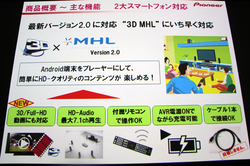 Made for iPod/iPhone/iPad認証を取得し、iPhone5やiPad miniとの接続にも対応。また、新たにMHL ver.2.0に対応。Android端末内の最大1080p/7.1chコンテンツに加え、3D動画もテレビに映し出して再生が可能となった。さらに、パイオニアAVアンプのリモコンでAndroid端末の操作が行える。なお、今期モデルにはMHLケーブルは付属しない。