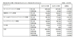 セグメント別におけるホーム&モバイルエレクトロニクス事業では、AVアクセサリー分野プロジェクター分野が好調を持続したが、欧州販売の減少や高付加価値戦略に伴う一部機種の絞り込みの影響に加え、主に上半期における対ユーロでの円高の影響もあり、売上高が前期比で約88億円(11.3%)減の687億9,300万円、営業利益は同約7億円(39.1%)減の10億5,300万円だった。