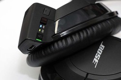音声コーデックは、SBCには対応。AACやapt-Xへの対応については「公開していない」(同社)としている。プロファイルはHSP/HFP/A2DP/AVRCP。アクティブイコライザーを内蔵することで音質を高めているという。電源はリチウムイオンポリマー電池で、約7時間の充電で約200時間の連続待受が可能だ。充電はモジュールに用意したUSB端子経由で行う。本体にLEDインジケーターを用意し、バッテリー残量やBluetoothの接続を確認できる。iOS端末とBluetooth接続した際は、iOS端末の画面上にヘッドホン側のバッテリー残量が表示される。