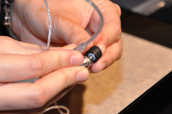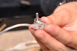 イヤホン側のコネクターは本体のカラーリングに合わせてクリスタルクリアー系の色味とした。「ケーブル自体の柔軟性も高めている」(SHURE Japanスタッフ)という。