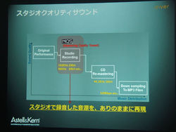 そしてプロの現場からの意見として、X JAPANなどを手がけるレコーディングエンジニアの杉山勇司氏、竹内まりやなどを担当するマスタリングエンジニアの原田光晴氏からのビデオメッセージを紹介。「(自分の録音した音源を聴いて)こんなに広く録音していたということを気付かされたことがショックだった」(杉山氏)、「AK100から格段に音質が向上した印象。特にレンジも広く、奥行きもあり各楽器の音色もちゃんと聴き分けられる」(原田氏)と、第一線で活躍するプロからも評価を集めていることを紹介した。