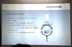 発表会ではまず、アジア地区担当ディレクターのキンツェル氏が登壇し、最近のbeyerdynamicの好調ぶりをアピールした。キンツェル氏は「2011年から2012年にかけて当社の売上は27%上がり、大きな飛躍を遂げた」と説明。製品ラインナップ別では、特に日本国内ではテスラドライバーを搭載したハイエンドモデルの人気が非常に高いという。