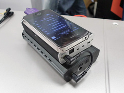 また、ハイレゾ音源やDSD音源の再生に対応した専用アプリの展示およびデモも行った。アプリは夏頃のリリース予定。詳しい仕様は現在調整中だが、イコライザー機能ではタップ(調整値の合計)が16,000〜20,000に及ぶものになるという。アプリで再生できる音源については、「iPod」タブからはiOS機器のiPodアプリ内の音源が選択でき、「HD」タブからはiTunesではiOS機器をストレージとして手動で保存した楽曲(ハイレゾ、DSDなどiTunesから転送できないファイル)を選択して再生できる。