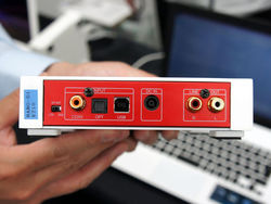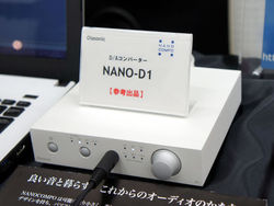 オラソニックは、“NANO COMPO”シリーズの新製品としてD/Aコンバーター「NANO-D1」を参考出展。同製品は192kHz/24bit対応で、44.1kHz音源の192kHz/24bitへのアップコンバート機能も搭載している。「単体で使うだけでなく、将来的にはセパレートシステムのプリ段として使えるようにという意識もしている」という。