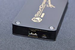iOSデバイスのデジタル接続や、DSD(2.8MHz)音源再生に対応。PCM音源の、最大192kHz/32bitまでのアップサンプリング機能を備えているのが特徴だ。またアシンクロナス転送にも対応する。