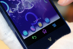 東京ディズニーリゾートの待ち時間ナビアプリをプリインストール。ミッキーとミニーのオリジナルスマホピアスを付属品として用意し、装着するとミッキーやミニーのグラフィックが楽しめる。