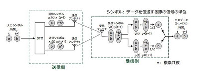 今回NHKが開発したSFN技術は、時空間符号化技術を用いて、情報を時間的・空間的にエンコードし、各送信局から別々に送信する。その後、受信側で異なる信号を受信し、合成する。この方法により電波が互いに弱め合うことなく、安定した受信が可能になったという。なお時空間符号化はSTC(Space-Time Coding)とも呼ばれる。