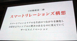 田中氏は「2013年は、この“スマートパスポート構想”で具現化した“3M”の世界を、もっと日常の生活に溶け込むサービスへと進化させるため、第二弾として“スマートリレーションズ構想”を開始する」と説明。「スマホの画面の中だけでサービスが終わるのではなく、スマホが現実の生活ととながっていく可能性をサービス化していきたい」と述べた。