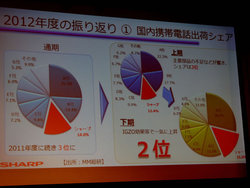 その上で2013年度上期については「フルHD IGZO搭載モデルの商品化(ドコモ向けAQUOS PHONE ZETA)」「3日間使えるIGZO搭載モデルの商品化(KDDI向けAQUOS PHONE SERIE)」「業界初フルセグTV搭載モデルの商品化(ソフトバンク向けAQUOS PHONE Xx)」の3点が重点的な取り組みだと説明した。