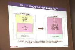 スカパー!では2014年5月31日に、プレミアムサービスのうちMPEG-2を利用したSD放送を終了する予定。これによって空いた周波数帯域を利用し、来年秋以降にすべて放送をHD化する計画だ。なお現在H.264で放送している159chのうち、HD放送は118ch。