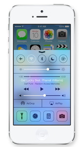 各機能へより簡単にアクセスできるようにした新機能「Control Center」を搭載。画面下部をスワイプすると、機内モードやWi-Fi、Bluetooth、画面輝度などの設定/調整やAirPlayのリモコン機能などが利用できる。また、カメラや時計などのアプリもより簡単に起動できるようになる。