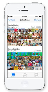 iOS 7では、これまでのiOSで多用していた、実際の物体を模したデザインを廃止し、フラットなデザインに生まれ変わる。デザインは全体的にシンプルになり、アイコンも刷新される。