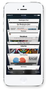 SafariのUIも刷新。スクロール中はアドレスバーが消えるなど、より画面を広く使えるようになった。また、開いているタブ一覧画面のインターフェースも変更した。