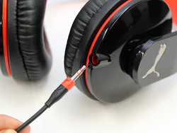 付属ケーブルは長さ1.3mで、片出しタイプの着脱式。iPhone/iPod/iPadに対応するリモコンを装備しており、ボタンにはPUMAマークがあしらわれている。
