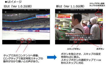 そのほか、ビデオ再生画面のコントロールを見直し。これまでは次のコンテンツへ移動する操作と指定時間スキップを行う操作を1つのボタンで行っていたが、新しいUIではボタンを独立させ、スキップの設定時間もUIに捧持するようになった。