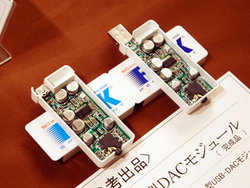 そのほか少々変わったところでは、イーケイジャパンがフリスクケース大の超小型USB-DACモジュールを参考展示。DAC ICにはPCM2704を採用し、48kHz/16bitまでの対応という製品で、3,000円を切るくらいの価格を予定しているという。