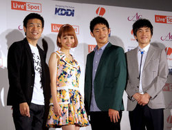 そのほか発表会には、スペシャルゲストとして品川庄司の品川さん、しずるの村上さんと池田さん、水沢アリーさんの4人が登場。BOYFRIENDのライブ映像の5.1chと2ch再生での比較デモを実際に体験し、「生の『何が起きるか』という臨場感がありながらも、映像がちゃんとカット割りされていたり、ミュージシャンの表情も確認できる」や「(5.1chなら)お客さんの歓声を(演奏音とは)別chから出せるから臨場感がちゃんとでてる」と品川さんがその魅力をコメント。