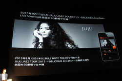 有料ライブ配信の第一弾は上述のように8月15日に行われるJUJUの公演。「JAZZ TOUR 2013 -DELICIOUS 2ND DISH-」のファイナルとしてBLUE NOTE TOKYOで開催されるライブを、全国60劇場でライブ配信する予定。すでに抽選受付のプレオーダーも行われており、価格は全席指定の3,500円(税込)。なお、サービス開始記念として全国30劇場、60組120名を無料招待する。