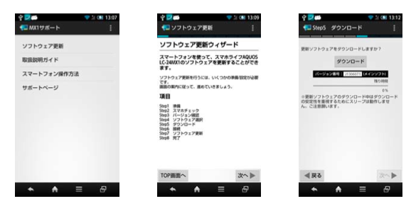 また同社は、スマホライフAQUOSのソフトウェアを、スマホからバージョンアップするAndroid向けアプリ「MX1サポート」も本日からGoogle Playで公開した。本アプリをインストールしたAndroidスマートフォンとテレビをUSBケーブルで接続し、スマホ画面の説明に従って進めていくだけで、手軽にソフトウェアをバージョンアップできる。