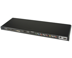 入力端子には、HDMI×2/DVI-D×1/VGA×1/コンポーネント×1/コンポジット×1を搭載しており、様々な入力信号を720pまたは1080pにアップコンバートしてHDMI出力できる。そのほか、同軸デジタル出力端子も備えている。