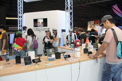 ブースではサマソニ出演アーティストの曲を使ってオーディオテクニカ製品の試聴も行える。注目は、今秋全世界で同時発売される新製品「SonicFuel(ソニックフューエル)」(関連ニュース)。発売に先駆けて初お目見えしていた。